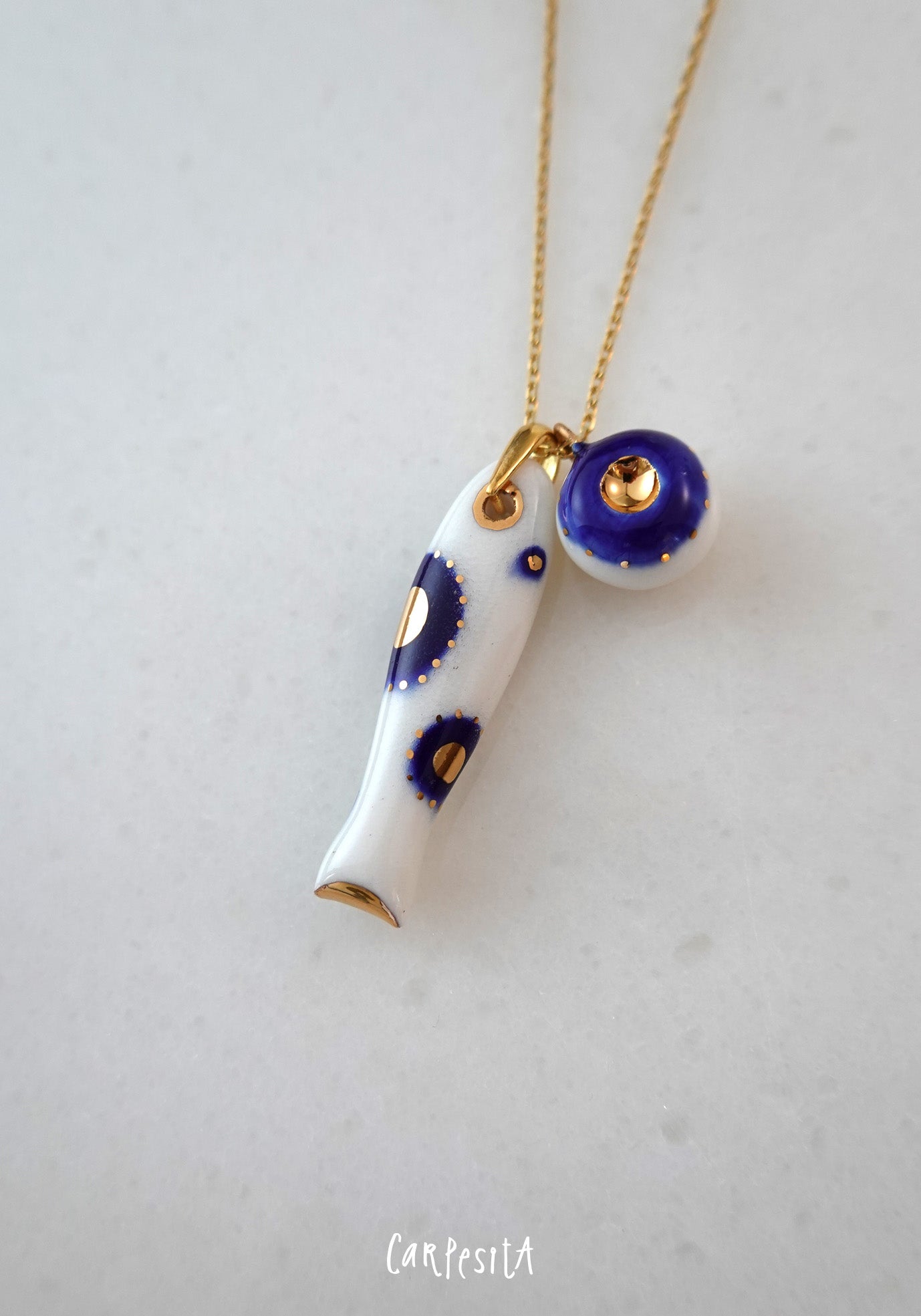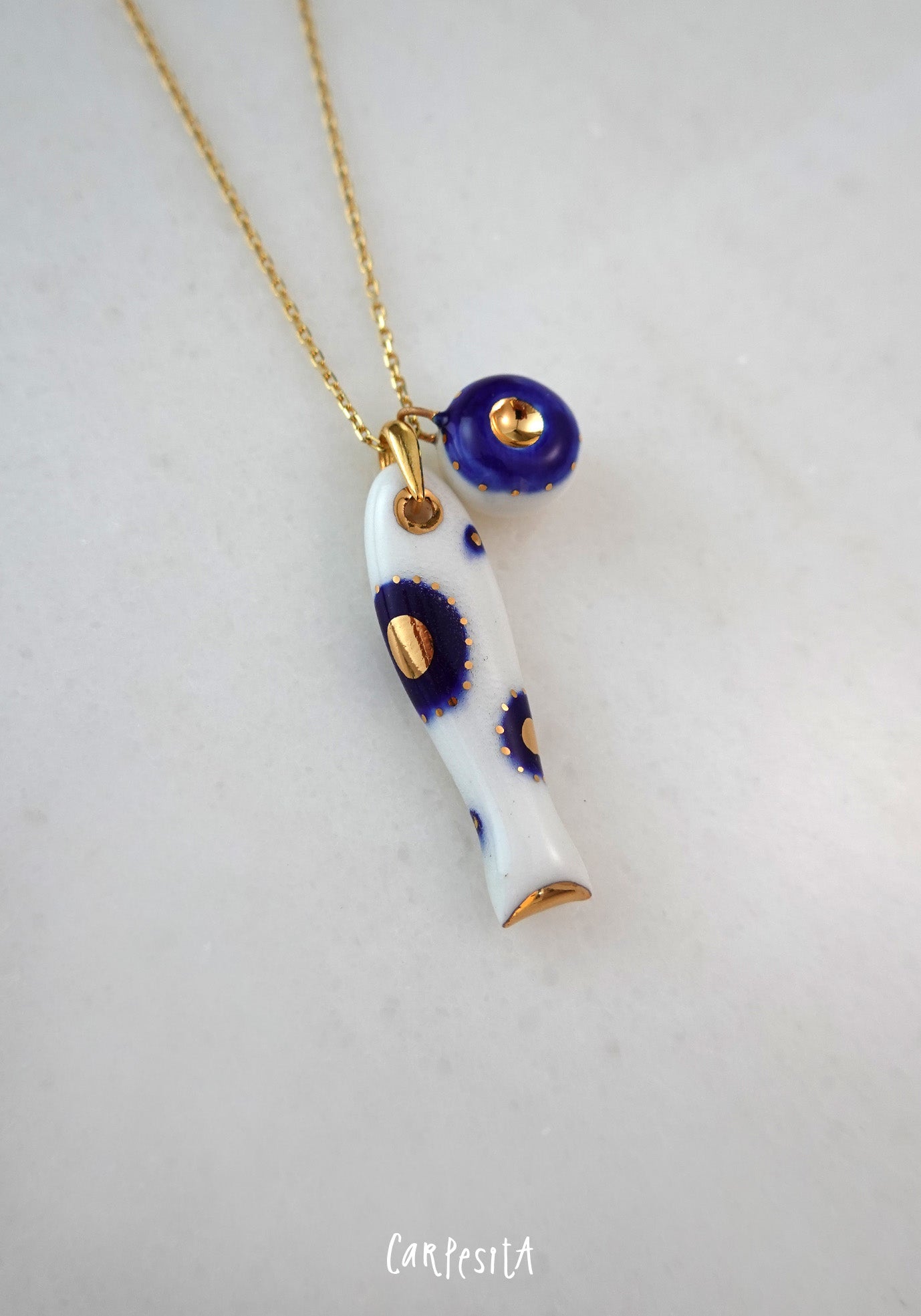 Lacivert Benekli Balık Kolye