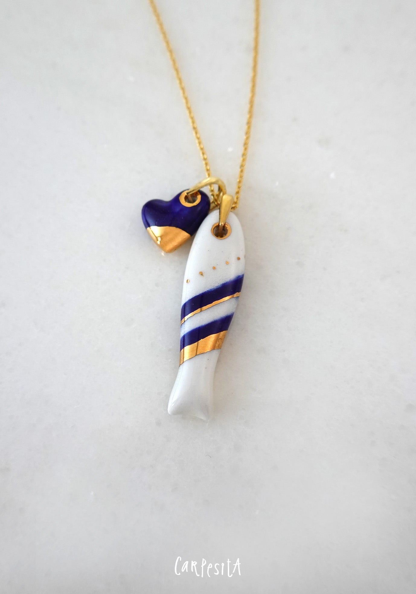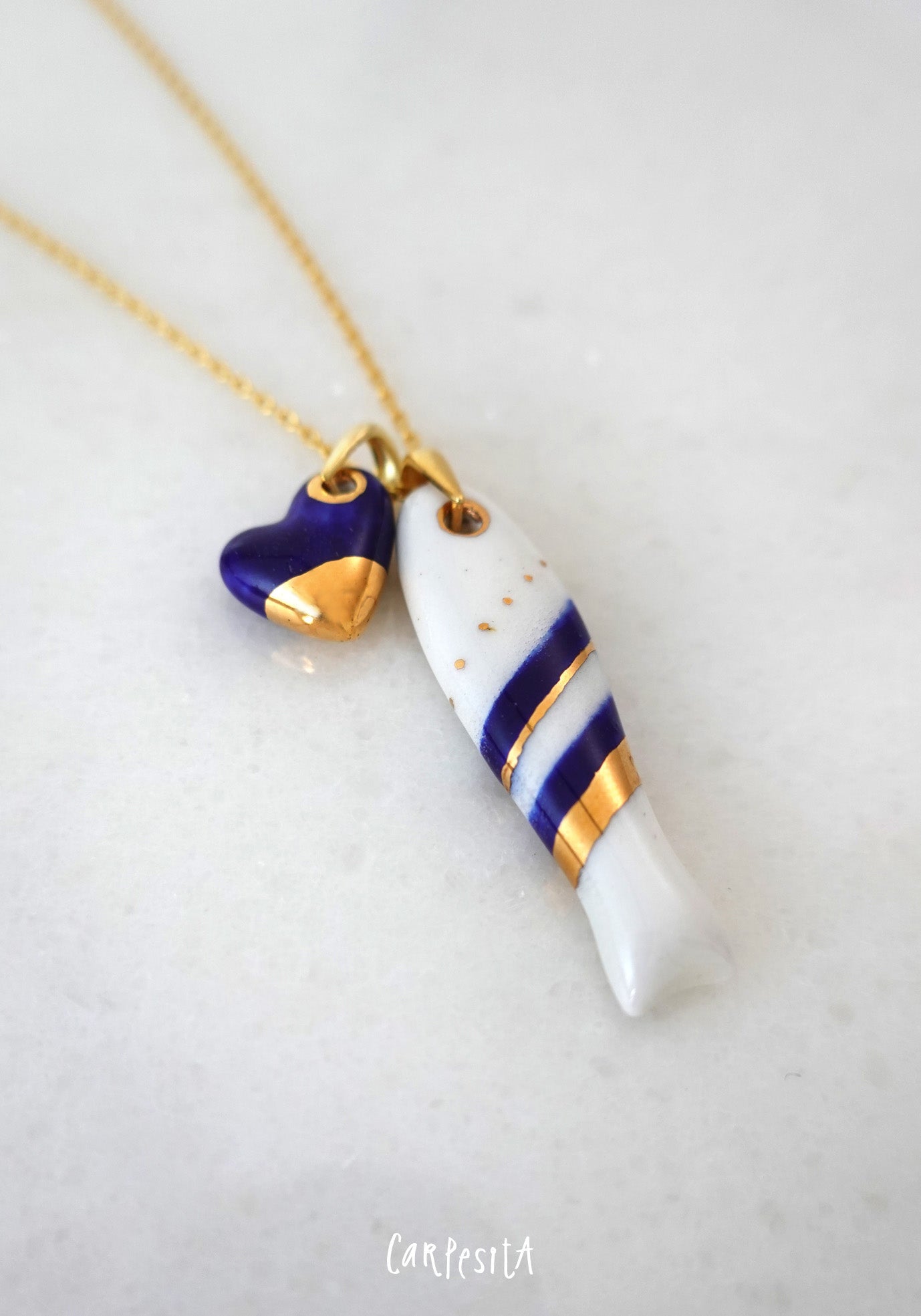 Lacivert Cizgili Balık Kolye