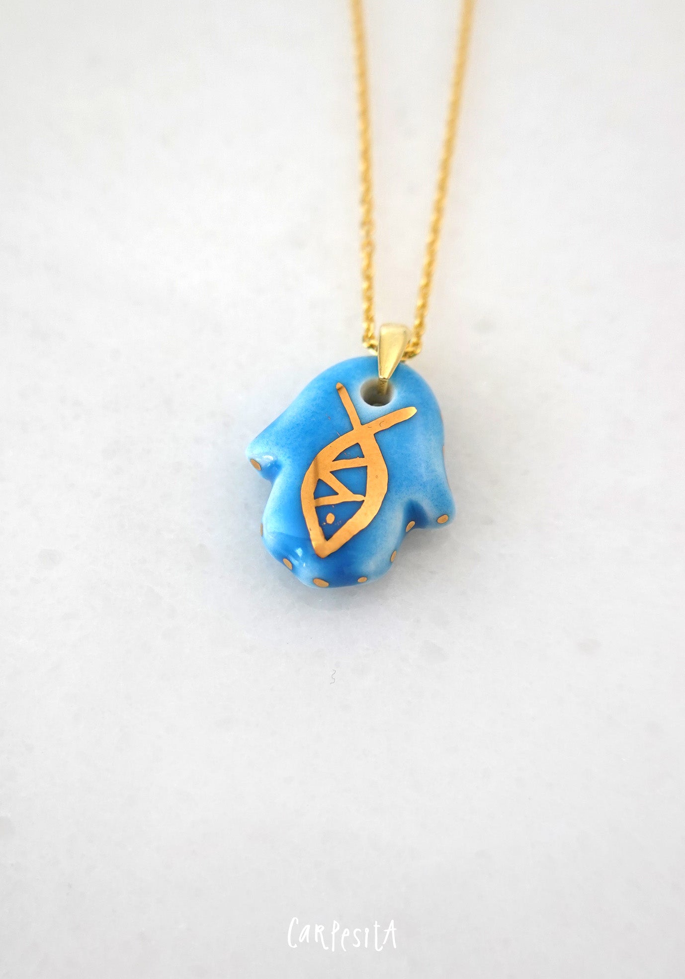 Mavi Balıklı Hamsa Kolye