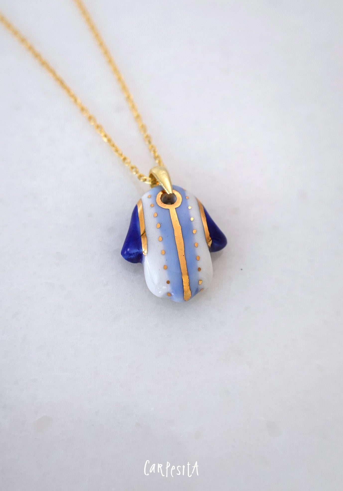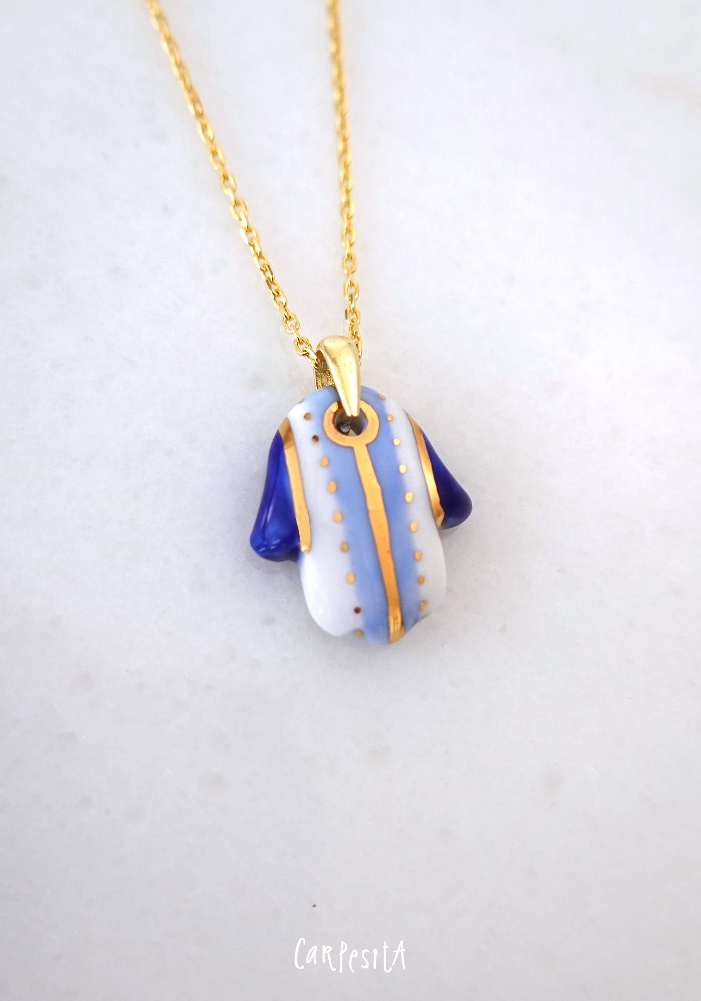 Mavi Çizgili Hamsa Kolye