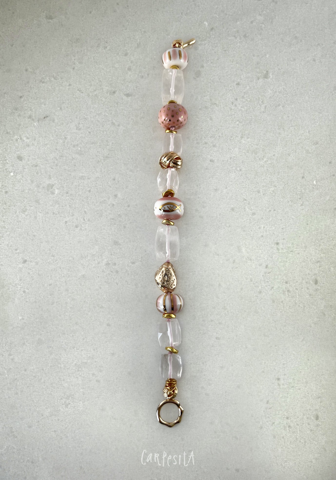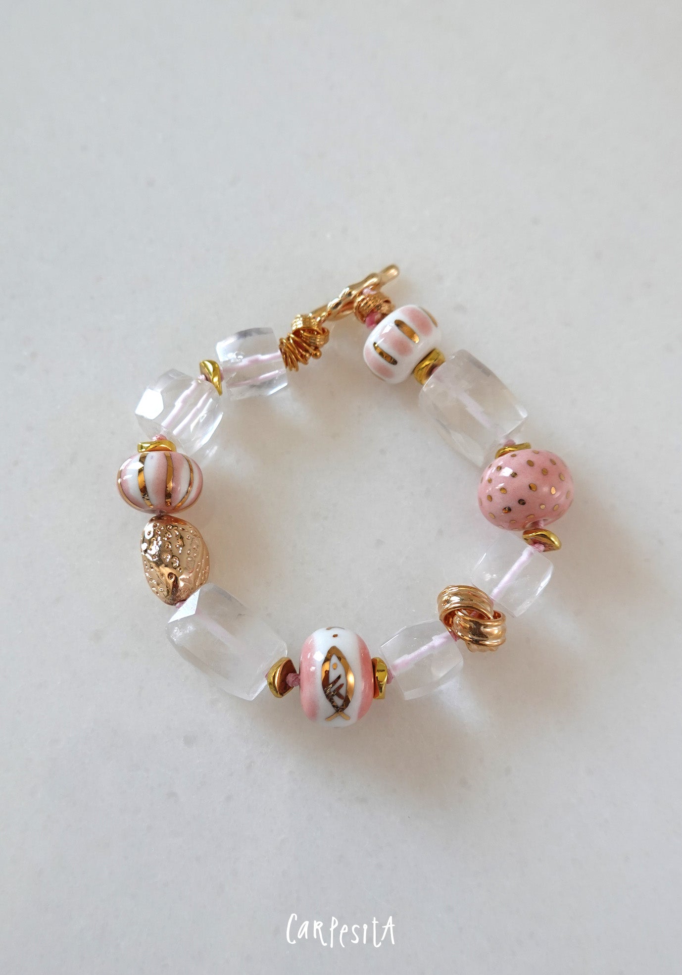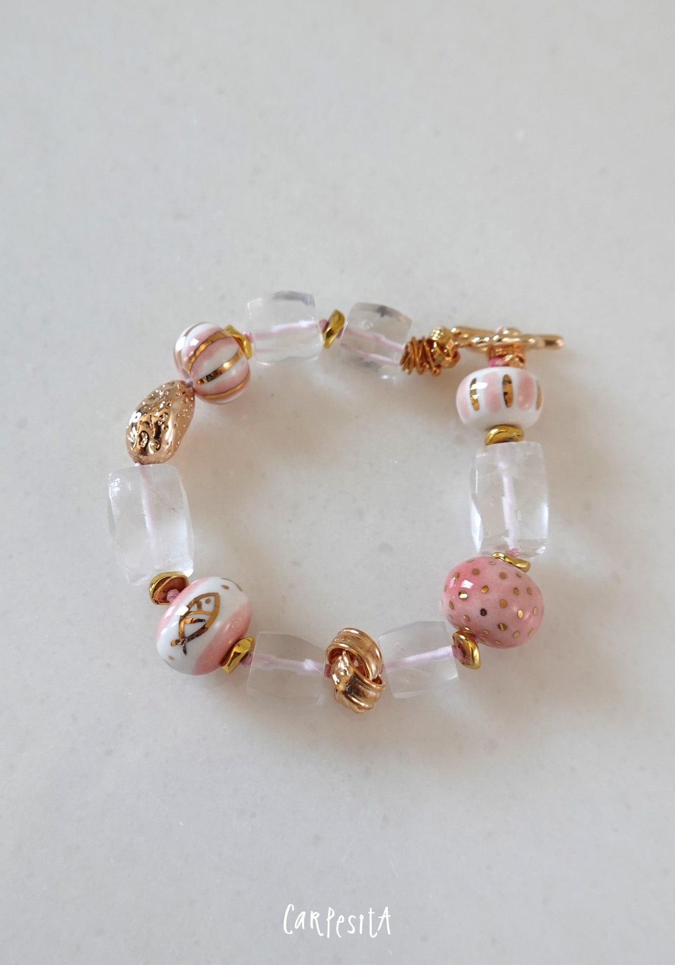 Taşlı Pembe Bileklik, Eşsiz Kuvars ve Porselen